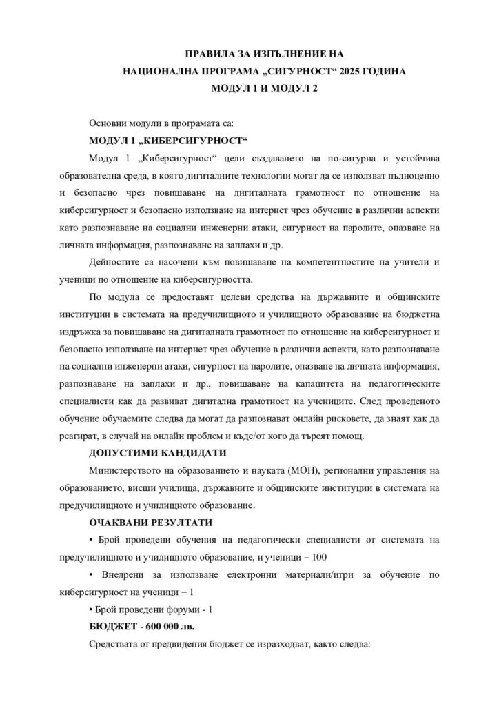 Обучения по Национални програми: 05.02.202615.10.2025 by MariaAbr НП” СИГУРНОСТ”- МОН МОДУЛ 1 МОДУЛ 2